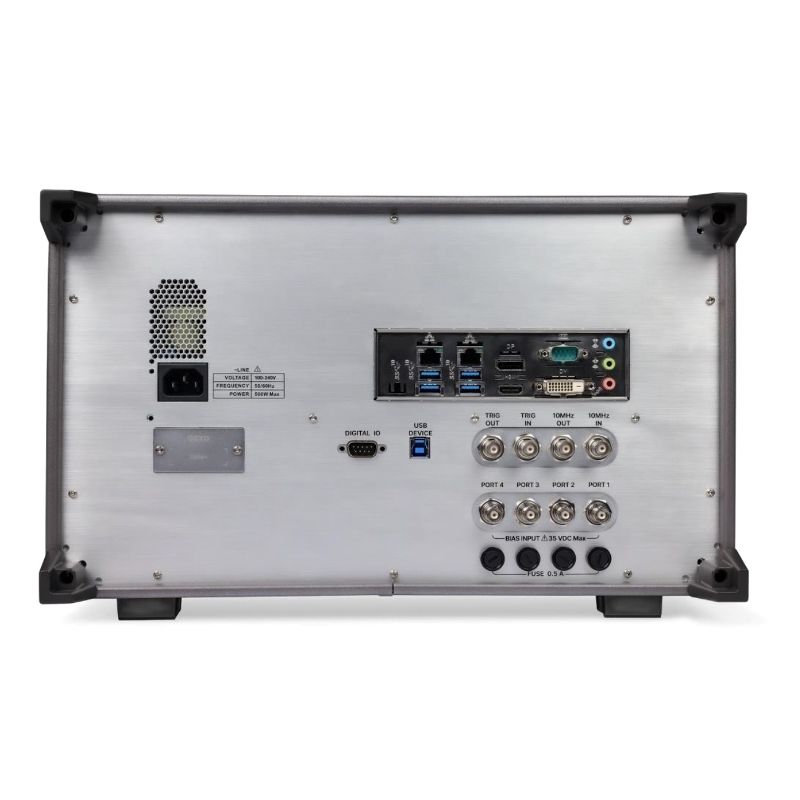 Устройство оснащено большим сенсорным экраном с диагональю 30,7 см, что обеспечивает удобство визуализации и управления. Для интеграции в автоматизированные измерительные комплексы предусмотрены интерфейсы USB, LAN, а также опциональный GPIB. Поддержка дистанционного управления через стандартные протоколы SCPI, LabVIEW и IVI по каналам USBTMC, VXI-11, Socket, Telnet и встроенный веб-сервер позволяет легко встраивать анализатор в различные программные среды. Наличие HDMI-выхода упрощает подключение к внешним мониторам. Также прибор совместим с инжекторами питания (Bias-Tees), что расширяет его применение при тестировании активных компонентов, требующих подачи постоянного напряжения.