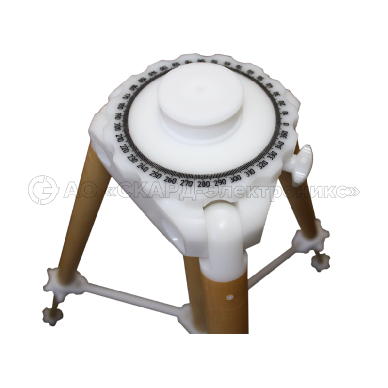 Диэлектрический штатив предназначен для размещения измерительных антенн при проведении точных измерений электромагнитного поля. Узел крепления штатива оснащен тремя координатными шкалами по азимуту, углу места и плоскости поляризации.
