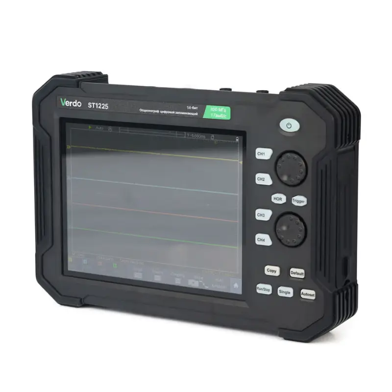 Осциллограф VERDO ST1225 представляет собой современный планшетный прибор, сочетающий высокую производительность с удобством использования. Благодаря компактному форм-фактору и 8-дюймовому дисплею он обеспечивает комфортную работу как в лабораторных условиях, так и в полевых. Прибор внесен в ГосРеестр СИ под номером 90665-23, что подтверждает его соответствие российским стандартам точности и надежности.