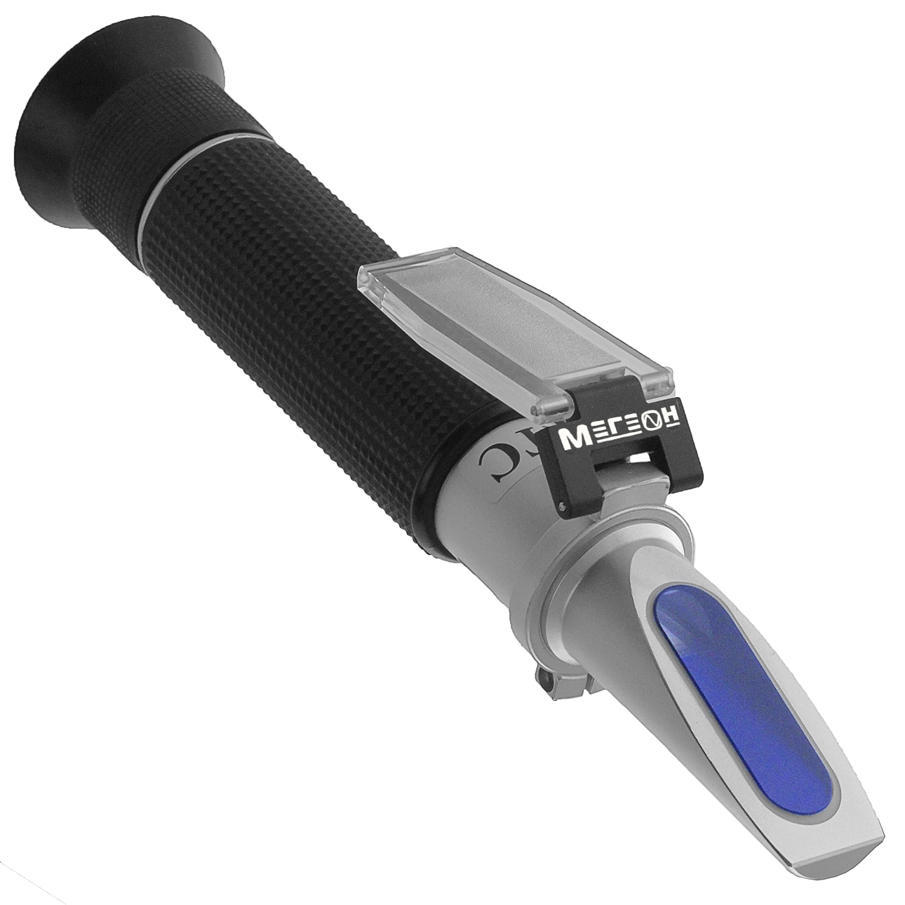 МЕГЕОН 72009 относится к оптическим измерительным приборам — рефрактометрам, которые предназначены для определения коэффициента преломления исследуемого вещества и проецировании отраженного света на специально отградуированный экран. Характеристики жидкости (концентрация, плотность и т.д.), устанавливаемые рефрактометром, определяют вид шкалы, нанесенной на экран. Для повышения точности предусмотрена система автоматической температурной коррекции (ATC), которая имеет широкий температурный диапазон работы. Для исследования достаточно нанести две- три капли на призму с градуировкой, закрыть прижимное стекло и настроить фокусировку. Не требуется источник питания, что даёт возможность производить измерения при низких температурах. Эргономичный корпус из алюминиевого сплава и простота эксплуатации максимально увеличивают срок службы изделия.