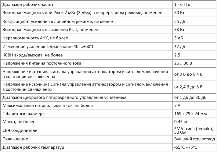AH 010060-55/30 широкополосный усилитель мощности 1 — 6 ГГц.